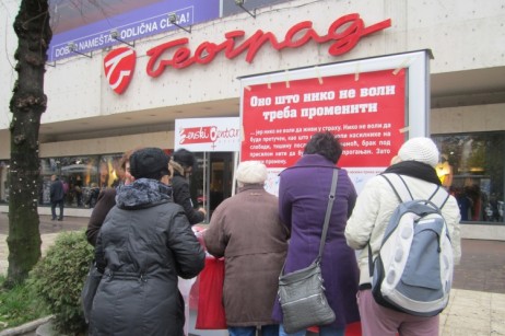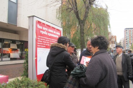 | Women Center Užice organized the street action for collecting signatures and distribution of leaflets to support the implementation of the Council of Europe Convention on preventing and combating violence against women and domestic violence. Action began with the press conference (RTS1, TV Lav, TV 5, “Vesti” and radio Luna). The action was supported by members of the newly formed Assembly Women’s Network led by the President of the Council for Gender Equality. |