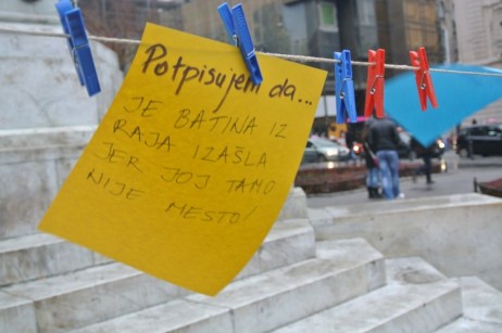| "Potpisujem. Stop nasilju nad ženama. I fizičkom i psihičkom. Stop nasilju svake vrste prema slabijima i nejakima." |