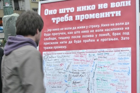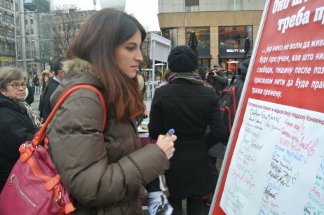 | Autonomous Women’s Center and women organizations organized the street action „I SIGN THAT...“ within marking the 25th of November, the International Day for the Elimination Violence against Women. The citizens of Belgrade were invited to COME, WRITE, SIGN and SEND empowering messages for women who have experienced violence. |