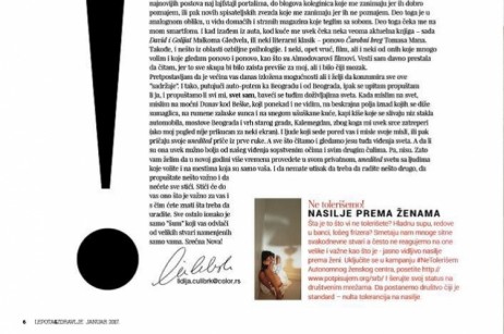 | "Strašno je kako se žena oseća kad je muž prebije. Uniženo i osramoćeno. Potpisujem jer želim da nasilnici završe u zatvoru, a ne sa uslovnom kaznom." |