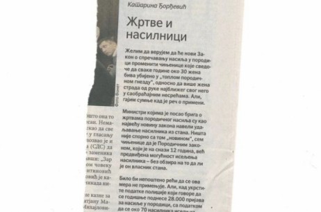 | "Podpisujem za svako nasilje a naročito nad nezaštićenom ženom i decom. Nadam se da će ova konvencija učiniti da se nasilnici smeštaju u neke "sigurne kuće" a ne žrtve." |