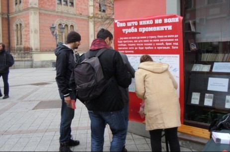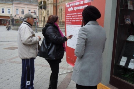 ...Out of circle – Vojvodina, organization for support of women with disabilities, organized the action I sign! on December 10th, the International Human Rights Day, in Novi Sad (near the City Library). The action was aimed to inform citizens on the content of the Council of Europe Convention on violence against women. There have been distributed information material, and citizens supported the implementation of the Convention with their signatures. Great interest was shown and a large number of participants supported the action. |