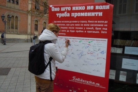 | "Potpisujem za zemlju bez nasilja nad zenama, bez nasilja nad ikim!" |