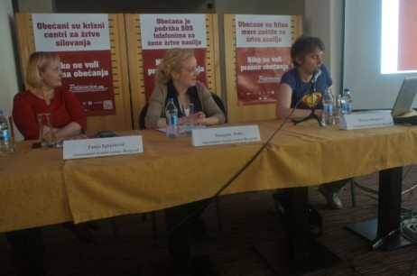 Autonomous Women's Center has presented activities within the project „Coordinated efforts – toward new European standards in protection of women from gender based violence“ at the conference "Safety and Security - from women for women", which was held on June 6-8, 2014 in Niš. Tanja Ignjatovic spoke about the Council of Europe Convention on violence against women, as a framework for future actions of women's organizations and Danijela Pešić delivered a speech on the project activities at the local level. Methodology for data collection, as well as content of informative leaflets for women victims of violence were offered to women's organization in Serbia. The campaing I sign was presented by Bobana Macanovic and the application Safe by Jelena Keserovic. |