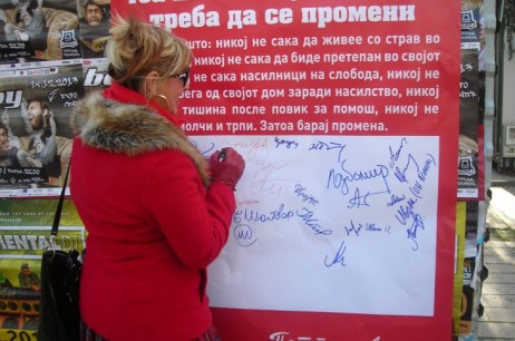 | "Potpisujem konvenciju protiv nasilja prema ženama." |