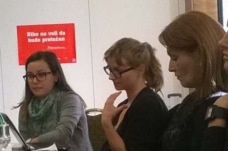 Regional – follow up conference of the high - level conference: "Monitoring and Implementation of the Istanbul Convention - New Synergies" The conference was dedicated to implementation of the Council of Europe Convention on Preventing and Combating Violence against Women and Domestic Violence. The conference was carried out in a frame of a project “Coordinated efforts - Toward new European standards in protection of women from gender based violence”, funded by the European Union - the European Commission. The conference was orginazed by women's NGO Foundation "United Women" Banja Luka from Bosnia and Herzegovina. The conference was attended by the regional and local partners, representatives of UN Women, Agency for Gender Equality of BiH and Ombudsman of BiH. At the conference were also present representatives of partner organizations in the project “Coordinated efforts - Toward new European standards in protection of women from gender based violence”, from Serbia, Slovenia, Croatia, Bosnia and Herzegovina, Montenegro, Macedonia and Austria. The following conclusions were made: - necessity of respect for the domestic non-governmental organizations that deal with the violence against women and domestic violence; - necessity of protection of intellectual property of the non-governmental organization; - necessity of focusing on the actual implementation of the Istanbul Convention and action towards institutions of government in this direction. The conference participants of Association SOS Help-line for women and children – victims of violence, from Slovenia: Dalida Horvat and Ana Vodopivc. Dalida Horvat introduced services for women – victims of violence in Slovenia and their funding. |