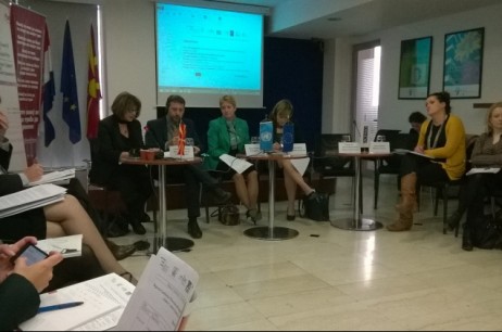 In addition to the introductory section, the conference was organized in three panels, discussing the legal framework as a precondition for adequate protection of victims of gender-based violence, the situation in Macedonia in terms of accommodation services for victims of gender-based violence, as well as the implementation of standards for the protection of victims of gender-based violence contained in the Convention. In the third panel, representatives of partner organizations on the project “Coordinated efforts - Toward new European standards in protection of women from gender based violence” presented different experiences and good practices in the region in relation to the requirements of the Convention. Special interest of the participants of the conference sparked indicators for monitoring the implementation of the Convention, as well as basic studies on the compliance of national legislation with the requirements of the Convention, created in the previous year. The conference participants of Association SOS Help-line for women and children – victims of violence, from Slovenia: Dalida Horvat and Ana Vodopivc. Dalida Horvat carried out a presentation called: “Protection and support of women victims of gender based violence - current conditions and good practices in Slovenia«. |
