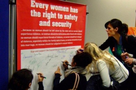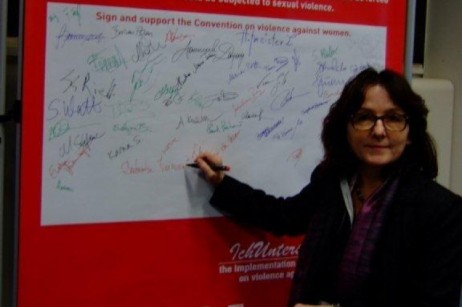 | "Potpisujem jer zene u cijelom svijetu zasluzuju odgovarajucu zastitu od nasilja!!" |