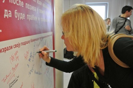 Representatives of local bodies for gender equality from 34 cities in Serbia singed for the implementation of the Council of Europe Convention on preventing and combating violence against women and domestic violence. The Ceremonial signing was organized by Autonomous Women’s Center and Network Women against Violence within the training of Standing Conference of Towns and Municipalities of Serbia, which took place on November 27-29th 2013 in Niš. |