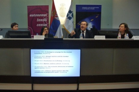 | Autonomno centro manušnjengo, sar kotor lošanimasko katar 20 bućarimašće brša, ćerda dujđesešći maškarthemutni konferencija talo alav „Kako je ženski pokret uticao na državne politike“. (Savo efekto pe raštraći politika ćerda o manušnjalo miškope). Pale pharimata pe save maladon e manušnjale bivladaće ćidimata ando them svato dija o prof. Rašida Mandžu, specijalno bičhaldi Jekhetane Nacijendar palo bilačhipe opral manušnja. E manušnja andar bivladaće ćidimata: Roza Logar (Austrija), Linda Gusia (Kosovo), Neva Tole (Hrvatska), Špela Veselič (Slovenija), Ljiljana Raičević (Crna Gora), Svetlana Janeva (Makedonija) thaj Bobana Macanović (Srbija) sikadine pire džanglimata andar regiono. Specijalno bičhaldo Evropaće Konsilestar palo bilačhipe opral manušnja, o raj Žoze Mendeš Bota dija svato palo aresipe save manušnjale bivladaće ćidimata dine ando proceso te anelpes e Konvencija Evropaće Konsilestar palo ačhadipe thaj maripe opral bilačhipe manušnjengo thaj bilačhipe ande familija, savi e Republika Srbija čačarda po 31. oktobro 2013. bršesko. |
